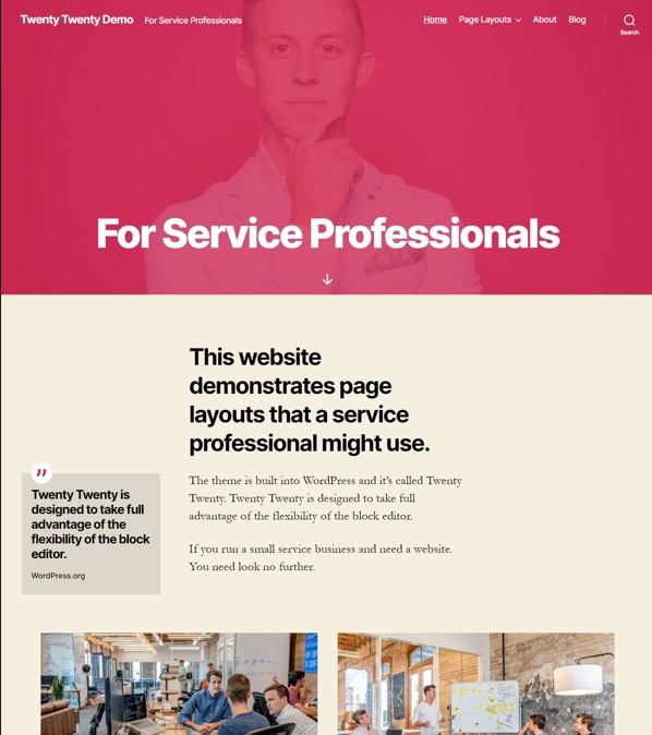 If you?re looking for a theme that?s professional, easy to use and worry free. Twenty Twenty is the obvious choice.